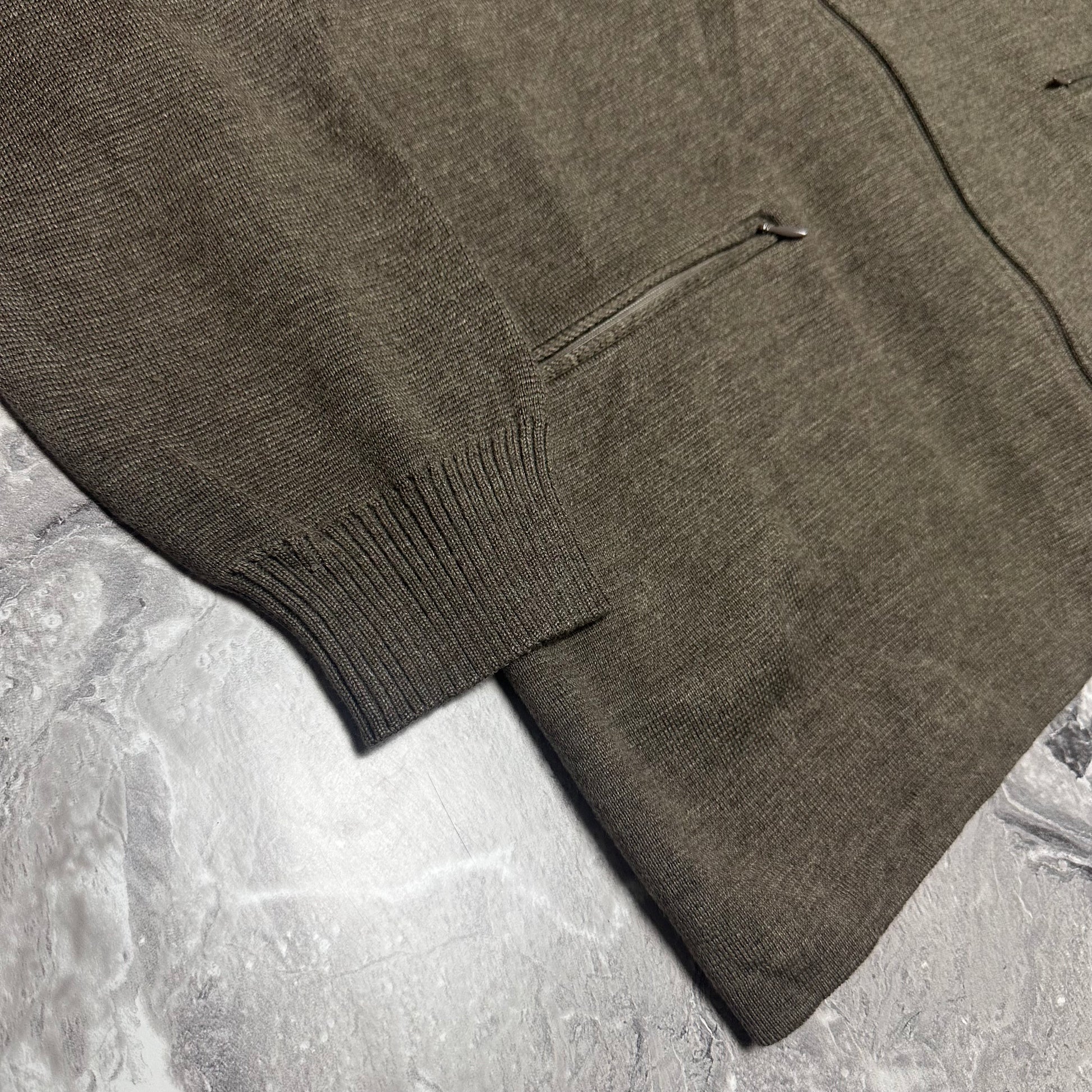 Gilet Burberry London en maille fine, dans une teinte kaki élégante et facile à associer. Coupe classique avec fermeture zippée intégrale et col chemise structuré pour une allure soignée et intemporelle.