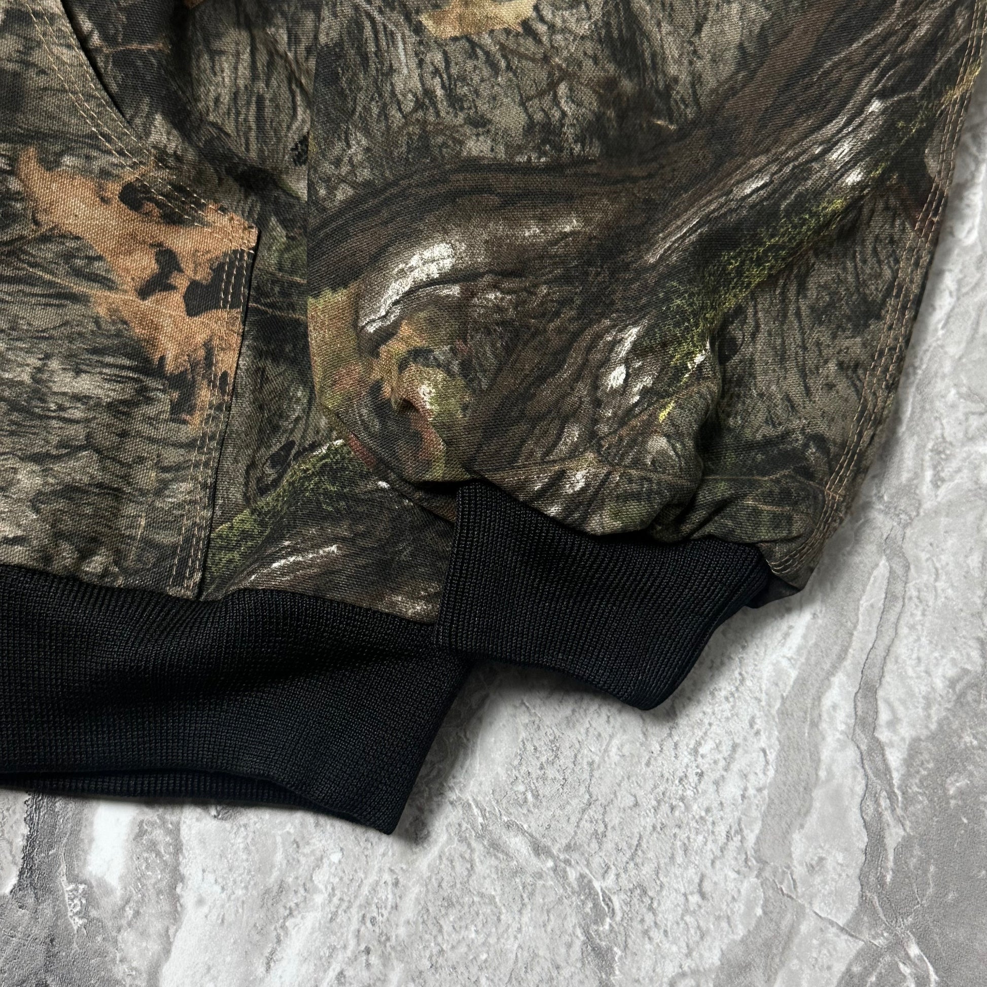 Veste Carhartt camouflage rework au design forêt authentique et puissant. Une pièce forte de seconde main issue de notre friperie, idéale pour un look streetwear affirmé.