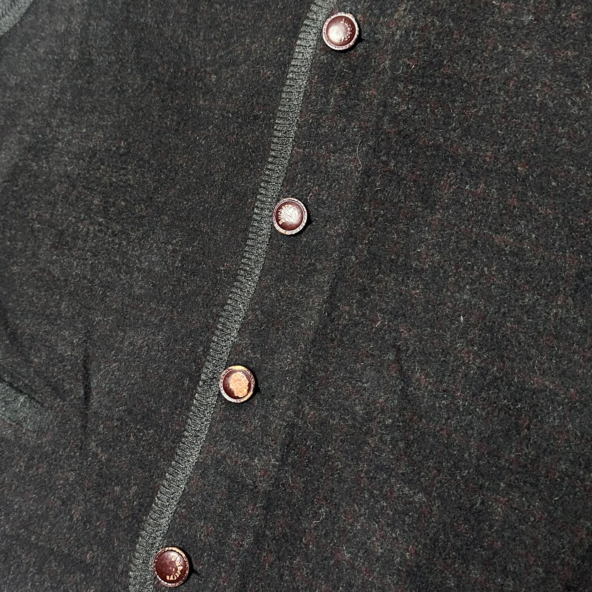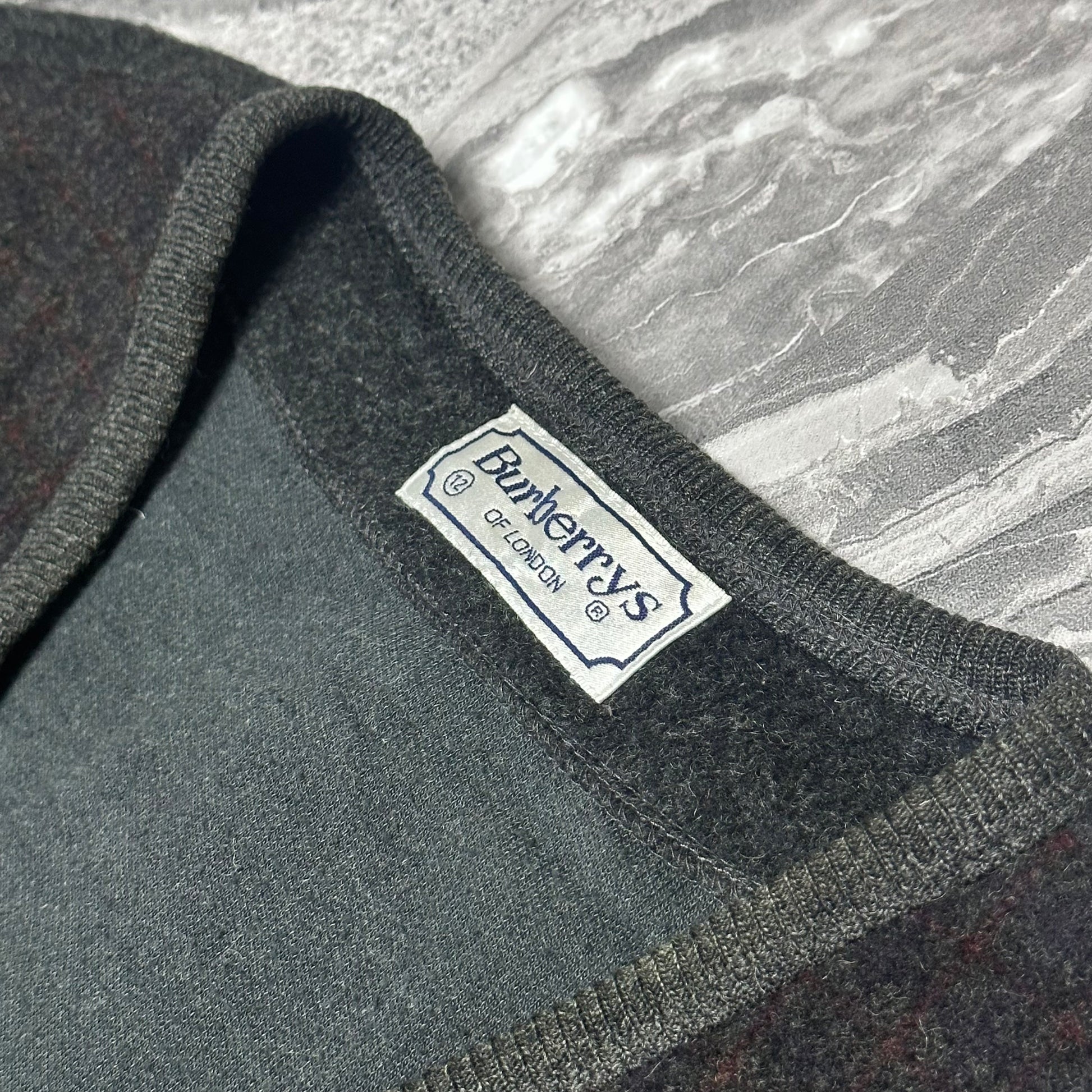 Gilet en laine à motif discret signé Burberrys of London, avec fermeture boutonnée et finitions contrastées. Une pièce vintage élégante, idéale en superposition.